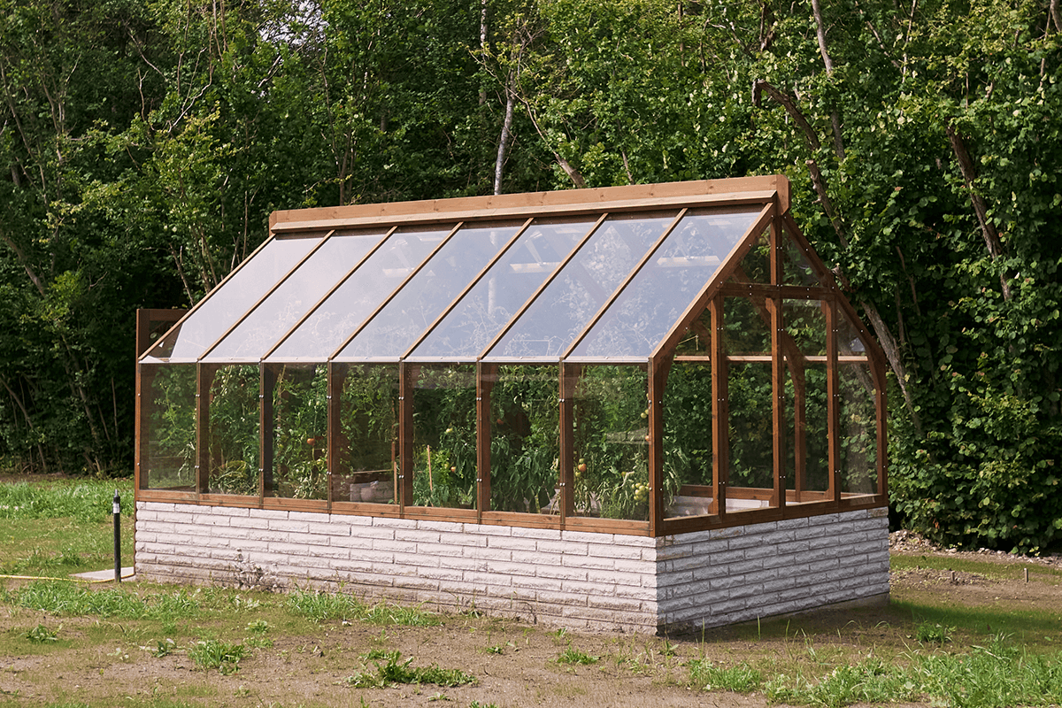 Kasvihuoneen runko on valmistettu kestävästä suomalaisesta lämpöpuusta.