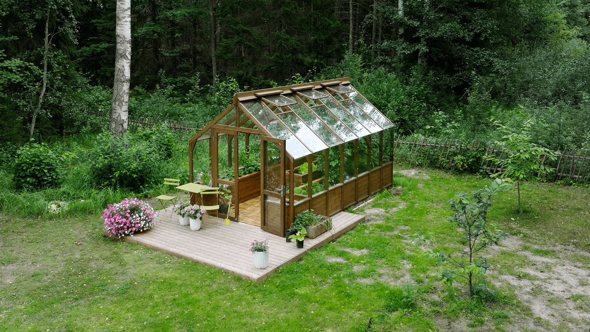 Lähe puinen kasvihuone ei ole tarkoitettu ainoastaan kasvien kasvattamiseen – se voi toimia myös kauniina puutarhapaviljonkina, jossa rentoudutaan vehreyden keskellä, nautitaan aterioista tai kestitään vieraita. Puun luonnollinen lämpö luo kodikkaan ja kutsuvan tunnelman ja tekee kasvihuoneesta elegantin oleskelutilan. Käytä sitä rauhallisena lepopaikkana, kesäisenä ruokailutilana tai luovana työtilana – se mukautuu jokaiseen vuodenaikaan ja tilaisuuteen. Se on paikka, jossa aika saa pysähtyä.
