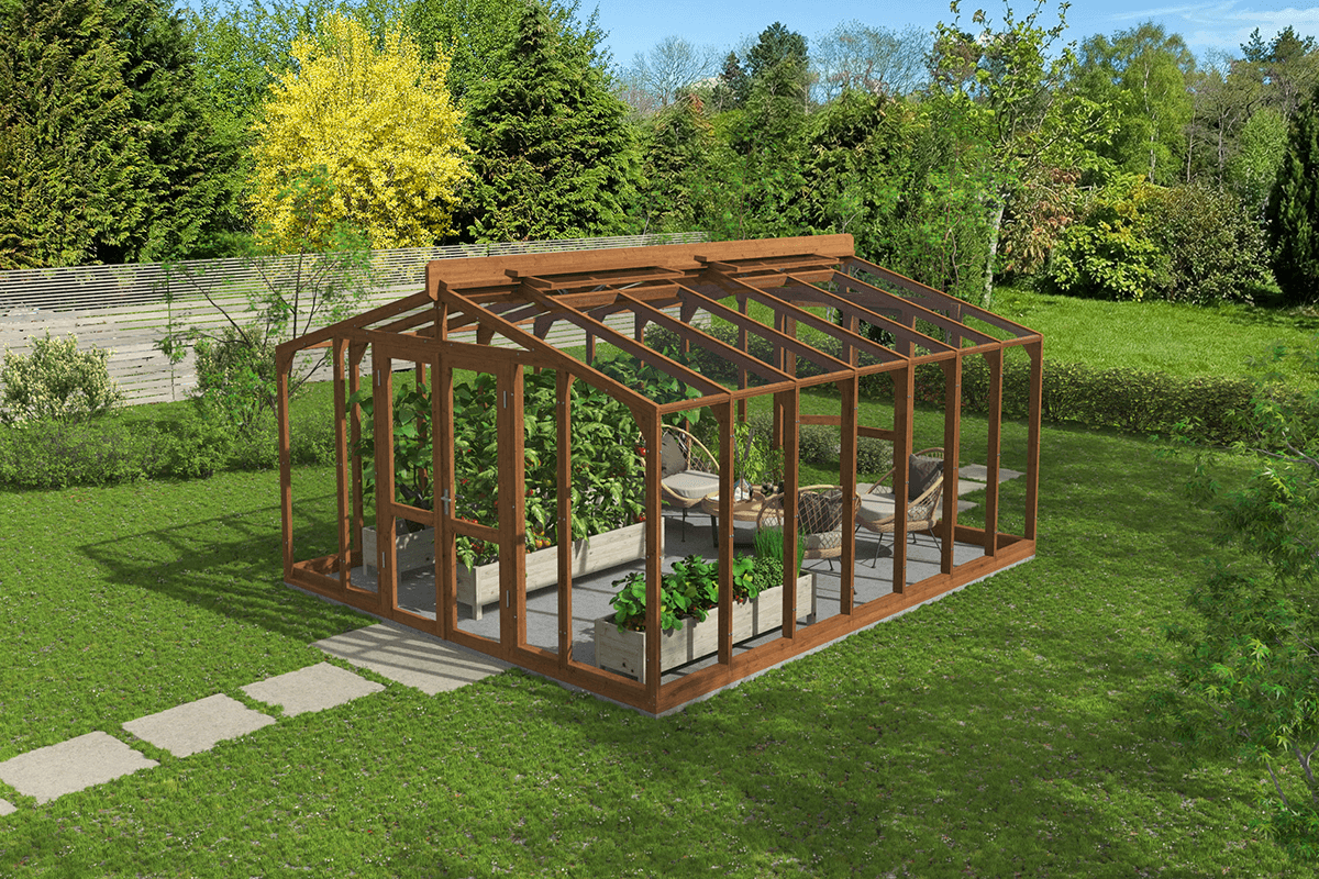 Kasvihuoneen puurungolla on 15 vuoden takuu.